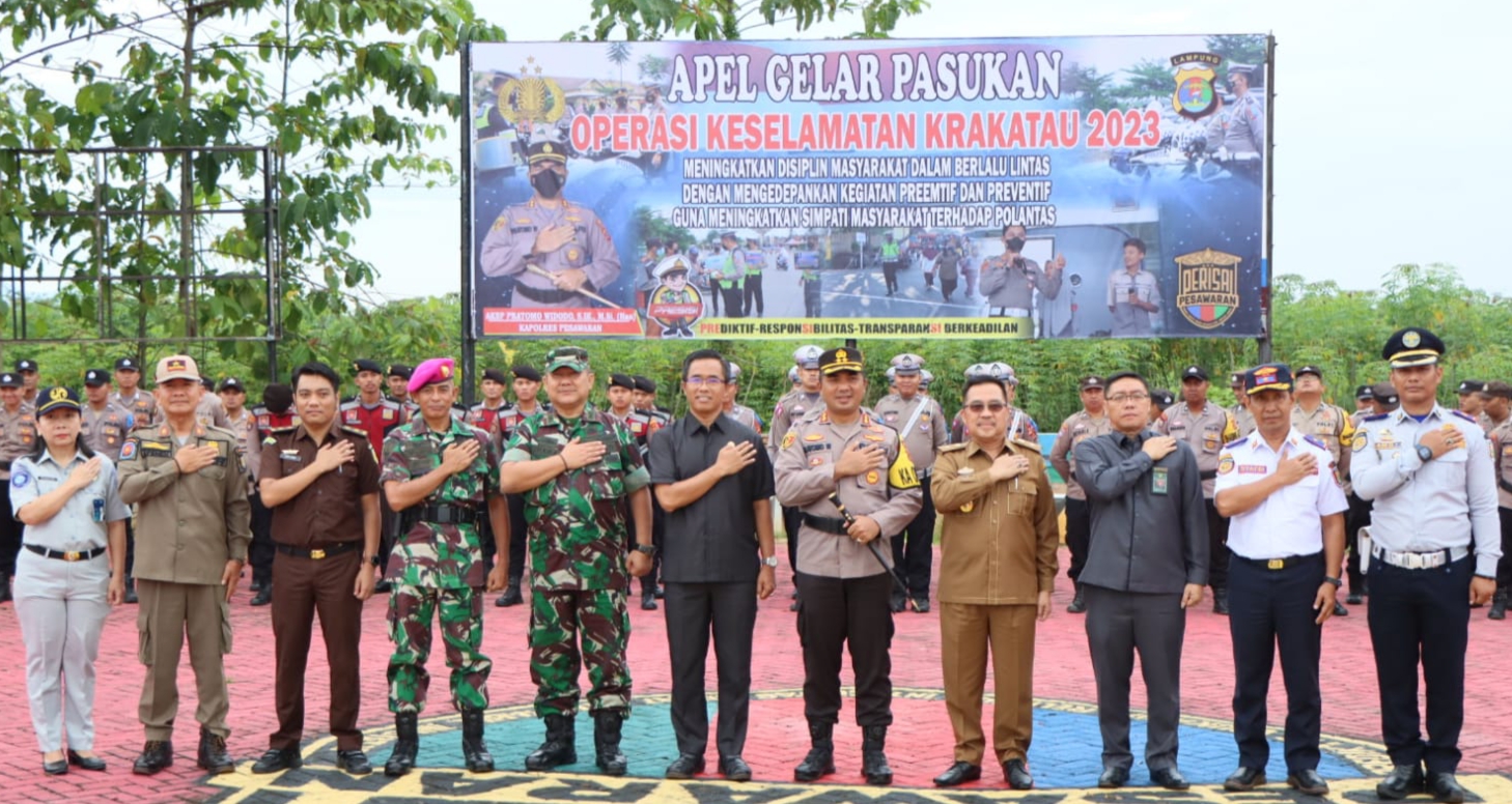 Ops Keselamatan Lalu Lintas Krakatau 2023 juga ditandai dengan penyematan pita kepada petugas gabungan, yang terdiri dari petugas kepolisian, TNI, serta petugas Dinas Perhubungan Kab. Pesawaran. Kegiatan itu dihadiri Bupati Pesawaran yang diwakili Sekda Kab. Pesawaran Wildan,S.E.,M.M , Dandim 0421/LS diwakili Pabung Pesawaran Mayor Inf. Ihara Wangsa, Anggota DPRD Pesawaran Aria Guna,S.Sos., Pasi Ops Yon 7 Marinir Kapten Hadi Windarko, Kadis Perhubungan Kab Pesawaran Ahmad Safe’i,S.Pd.,M.Pd., Kajari Pesawaran diwakili oleh staf Kejaksaan Davit Randi, Kasat Pol PP Kab Pesawaran Drs Effendi, M.M., PJU dan para Kapolsek Jajaran Polres Pesawaran. (zamzami)