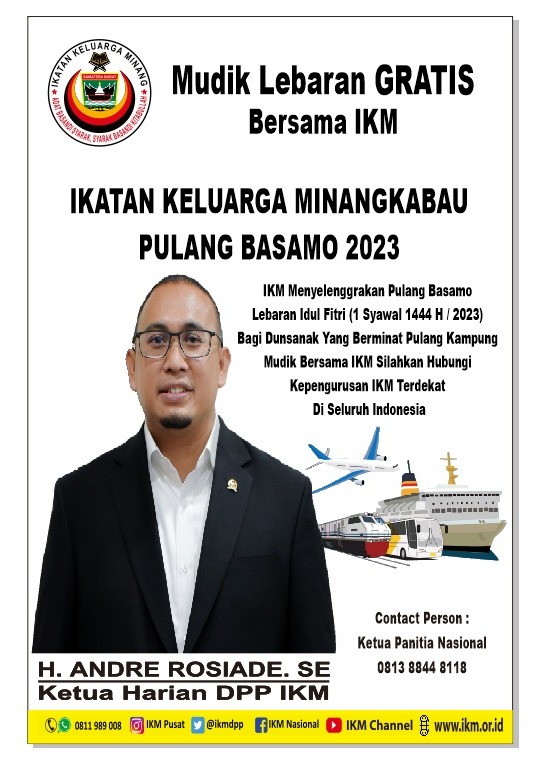 Sebelumnya, beredar informasi di sejumlah grup percakapan WhatsApp terkait informasi ‘Pulang Basamo’ yang digagas DPP IKM.Dalam informasi berupa flyer digital tersebut disebutkan DPP IKM menyiapkan 500 bus gratis bagi perantau yang hendak pulang ke Ranah Minang.“Berangkat dari Jakarta Tanggal 14-15-16 April 2023 dengan titik kumpul Masjid At-Tin dan Monas,” begitu bunyi informasi tersebut.Dinukil dari berbagai sumber, ‘Pulang Basamo’ adalah istilah dalam bahasa Minangkabau yang berarti mudik secara bersama-sama menjelang Hari Raya Idul Fitri.