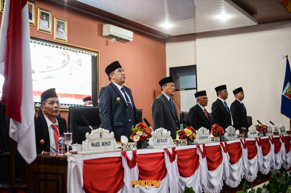 InvestigasiMabes.Com | Pesawaran -- Bupati Pesawaran H. Dendi Ramadhona K, ST.M.Tr.I.P hadiri Rapat Paripurna Istemewa DPRD Pesawaran dalam rangka Pengambilan Sumpah/Janji Peresmian Pengangkatan Pengganti Antar Waktu (PAW) Anggota DPRD Kabupaten Pesawaran masa Jabatan 2019-2024 di Gedung DPRD Kabupaten Pesawaran, Senin, (13/02/2023).Bupati Dendi menyampaikan berdasarkan Undang-undang Nomor 23 Tahun 2014 tentang pemerintahan daerah pada Pasal 57 dinyatakan bahwa penyelenggara pemerintahan daerah adalah Pemerintahan Daerah Provinsi dan Kabupaten / Kota terdiri dari Kepala Daerah dan DPRD dibantu oleh Perangkat Daerah. Hal ini berarti lembaga DPRD adalah mitra kerja dan berkedudukan sejajar dengan Pemerintah Kabupaten Pesawaran dalam rangka penyelenggaraan pemerintahan daerah.