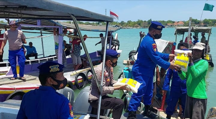 InvestigasiMabes.Com| SUMENEP – Sat Polairud Polres Sumenep yang merupakan Polres jajaran Polda Jatim di Pulau Madura memberikan himbauan sambil membagikan sembako kepada para nelayan pelabuhan Kalianget. Selasa ( 14/02/2023 )Seperti diketahui, dalam beberapa waktu terakhir, wilayah Kabupaten Sumenep dilanda cuaca ekstrem dengan hujan deras yang disertai dengan angin kencang. Sehingga mengakibatkan kuatnya gelombang laut yang dapat membahayakan kapal-kapal yang sedang berlayar.