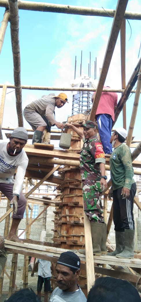 InvestigasiMabes.Com|BURU -- Babinsa Desa Waprea Koramil 1506-01/Namlea, Serka Arema membantu masyarakat Kerja Bakti pengecoran tiang Masjid Qadimun Rahman Desa Waprea, Kecamatan Waplau, Kabupaten Buru. Rabu, (15/02/2023)."Pelaksanaan Kerja Bakti pengecoran tiang Masjid ini , diikuti para Tokoh Agama, Tokoh Masyarakar dan Tokoh Pemuda Desa setempat yang dilakukan dengan gotong-royong, diharapkan dengan gotong-royong kegiatan pengecoran lebih cepat selesai," pungkas Babinsa.