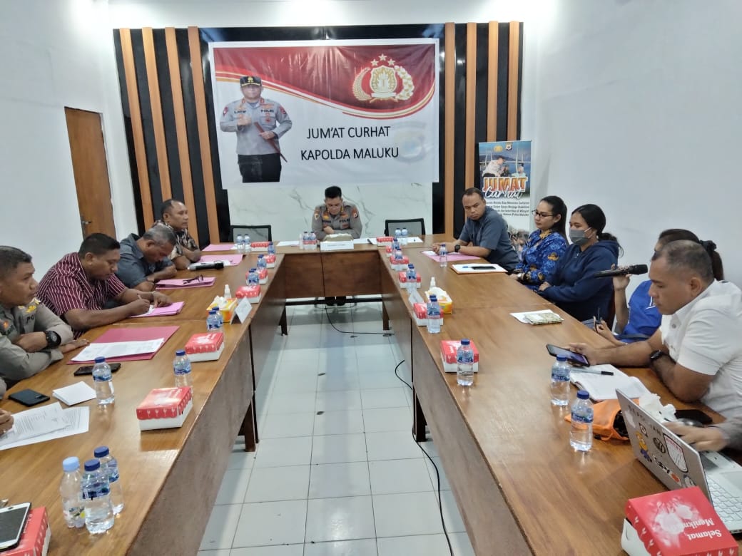 InvestigasiMabes.Com|POLDAMALUKU -- Kepolisian Daerah Maluku kembali menggelar Jumat Curhat bersama masyarakat yang memberikan pengaduan ke Bidang Dumasan Itwasda Maluku.Kegiatan yang bertujuan untuk menyerap aspirasi masyarakat terkait kamtibmas ini dilangsungkan di ruang rapat Direktorat Reskrimum Polda Maluku, Jumat (17/2/2023).