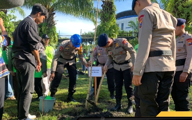 InvestigasiMabes.com | Malang -- Untuk merayakan Dies Natalis Ke-41, Politeknik Negeri Malang mengadakan kegiatan Merti Bumi penanaman 1000 pohon di lingkungan Polinema pada Sabtu (4/3) pagi. Pra acara diisi dengan senam pagi oleh komunitas Senam Kebaya Indonesia (SKI).Kegiatan ini didukung penuh oleh pemerintah dan aparat setempat dengan mendatangkan Walikota Malang, Polres, Kodim, Batalyon B Pelopor Sat Brimob Polda Jatim dan instansi terkait di Kota Malang. Dalam menghadiri undangan, Brimob Malang datang dengan membawa sekitar 200 bibit pohon siap tanam. Tak hanya itu, Brimob Malang juga mendatangkan satu unit mobil dapur lapangan lengkap dengan kru untuk menyediakan makanan serta minuman untuk para tamu.