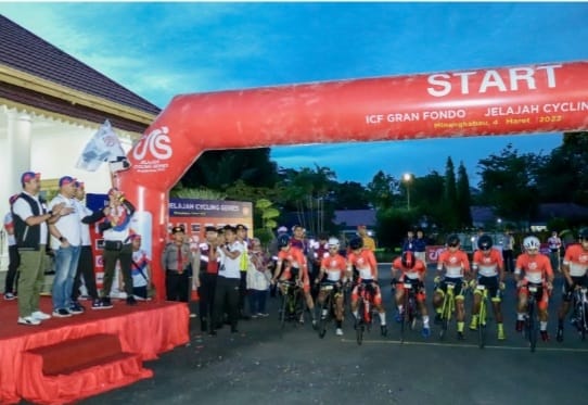 Investigasimabes.com |PADANG -- Event balap sepeda internasional Jelajah Cycling Series (JCS) Minangkabau 2023 resmi dimulai, hal tersebut ditandai dengan pengangkatan bendera start oleh Wakil Gubernur Sumatera Barat, Audy Joinaldy di halaman Istana Gubernuran, Sabtu (4/3/2023).Total panjang jarak yang ditempuh oleh para pembalap adalah 112 Kilometer, mulai dari Padang, Solok hingga finis di Istana Basa Pagaruyung, Batusangkar Kab. Tanah Datar.