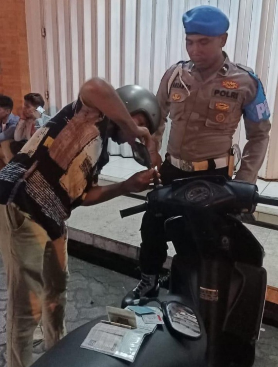 Semua kendaraan yang melintas di Jln. WR. Supratman, dihentikan oleh anggota Polsek dan dilanjutkan dengan pemeriksaan surat-surat kelengkapan berkendara maupun barang bawaan.