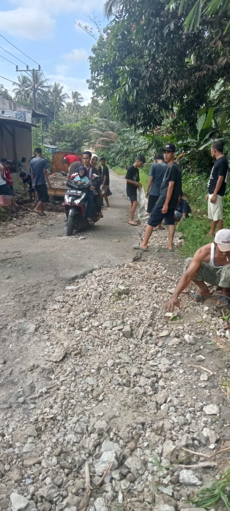InvestigasiMabes.com l Pandeglang -- Bertepatan pada hari selasa tanggal 7 Maret 2023 masyarakat kp. Kadu cukang dan Kadu Lengkong desa alaswangi kecamatan menes kabupaten Pandeglang, Melakukan gotong royong pembenahan infrastuktur jalan penghubung desa, yang dimana banyaknya jalan yang berlubang parah, Sehingga Rawanya kecelakaan sehingga menghambat Aktifitas masyarakat dan Pemulihan PerekonomianMasyarakat berinisiatif untuk menambal jalan kabupaten Penghubung Desa dengan puing-puing bekas rumah masyarakat dan bekas bangunan masjid, walaupun itu tidak maksimal yang terpenting tidak terlalu berbahaya untuk pengendara yang melintas.