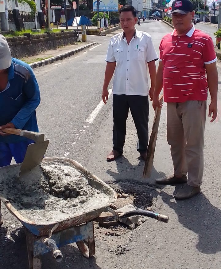 Investigasimabes.com |Tanggamus -- Rio Iskandar, Lurah Kuripan tambal jalan berlubang di jalan lintas barat jalur Dua kota agung, kamis tgl 08 bln 03 Th 2023. Rio iskandar S, IP, selaku lurah pasar madang di dampingi aparatur kelurahan kuripan turun tangan tambal jalan yang berlobang.Rio iskandar S, IP mengatakan, ini sebagai bentuk kepedulian saya sebagai lurah kuripan, karna saya selaku lurah di kuripan ini sudah seharusnya melakukannya, karena saya takut nantinya kalau jalan berlubang itu akan menibulkan korban.