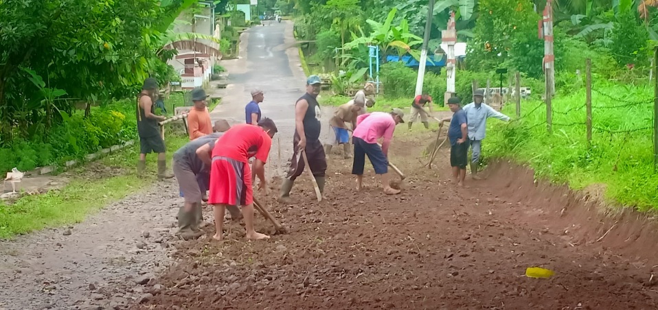 Sugianto selaku kepala desa CipadangMengajak warga masyarakat untuk bergotong royong memperbaiki jalan yang rusak menuju Beronjong di dusun Cilawang desa Cipadang.