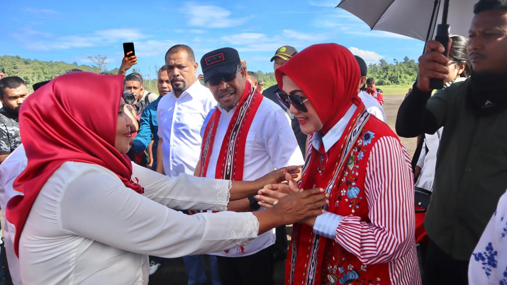 InvestigasiMabes.Com |Bula - Gubernur Maluku Murad Ismail didampingi istri Widya Pratiwi Murad, beserta rombongan tiba di Bandara Kufar Bula, Seram Bagian Timur, dengan menggunakan pesawat Trigana Air PK-YSJ pada Minggu (11/3/2023).Setibanya di Bula pada pukul 09.21 WIT, Gubernur dan rombongan disambut oleh Bupati SBT Abdul Mukti Keliobas dan Istri serta jajaran Forkopimda, yang dilanjutkan dengan pengalungan kain tenun oleh Raja Negeri Gah Abdul Latif Lausiri, serta disambut dengan tarian Parisa yang merupakan tarian adat dari Negeri Gah.