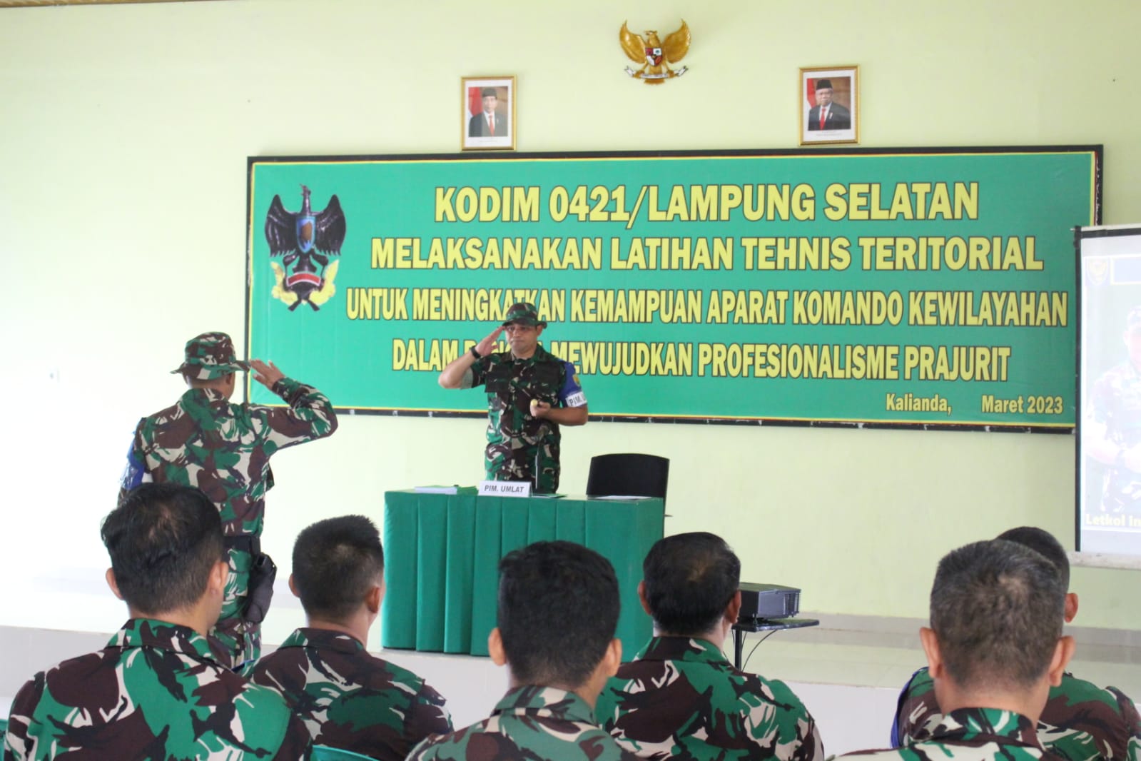 InvestigasiMabes.com l Lampung Selatan -- Komandan Kodim 0421/Ls Letkol Inf Fajar Akhirudin S.I.P.,M.Si. membuka secara resmi pelaksanaan Latihan Teknis Teritorial ( Latnister ) Tahun Anggaran 2023 yang di gelar di Ruang Aula Parikesit Makodim 0421/Ls,Senin(13/23).Latnister merupakan kegiatan untuk meningkatkan Kemampuan materi mengenai Kemampuan Teritorial, agar Para personil Kodim 0421/LS beserta jajaran paham dengan tugas dan tanggung jawab sebagai insan pembina Teritorial di wilayah.