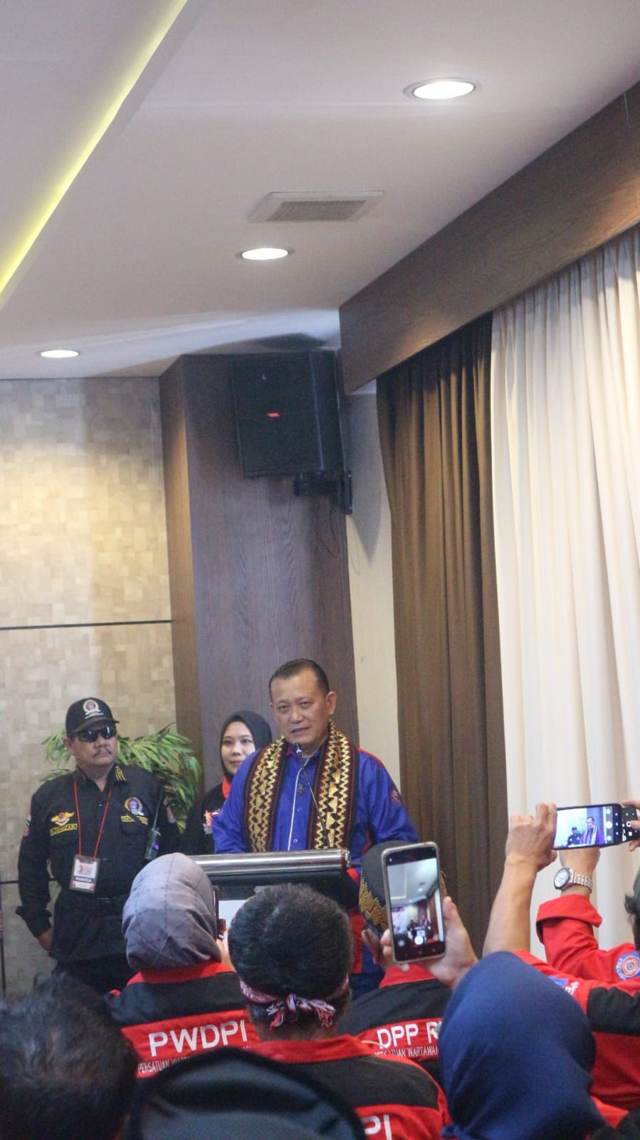 Lanjutnya,disamping itu, iya pun mengungkapkan bahwa PWDPI akan merekomendasikan kepada Kapolri mengingat bahwa insan Pers saat ini belum aman dari oknum, baik Wartawan di PWDPI maupun di Organisasi lain yang diduga kriminalkan dalam menjalankan tugasnya, paparnya.Diakhir sambutannya, dirinya menyampaikan bahwa PWDPI akan berkunjung ke Pembina DPP PWDPI Ndang Ike Edwin mantan Kapolda Lampung.Ditempat yang sama,Pembina PWDPI Ndang (Purn)Brigjen Ike Edwin mengingatkan agar Wartawan jangan membuat berita hoak.Dalam sambutannya yang juga bincang dengan Pengurus dan Anggota yang hadir dengan penuh senyum Ndang Ike Edwin memuji Ketua Umum PWDPI, Muhammad Nurullah RS, karena sukses menyatukan sekian banyak orang dalam organisasi.