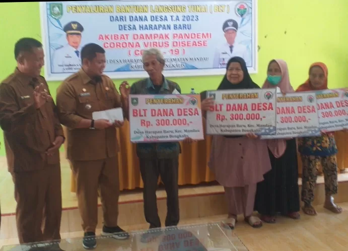 Kepala Desa Bathin Betuah Prayetno dalam sambutannya menyampaikan harapannya kepada masyarakat desa untuk dapat menggunakan dana BLT dengan sebaik mungkin untuk membantu ekonomi keluarga, dan juga kami menghimbau kepada seluruh masyarakat untuk selalu menjaga kekompakan serta kebersamaan.Sementara Kepala Desa Harapan Baru Tarmin menyampaikan rasa syukurnya kepada Allah SWT dan mengucapkan terimakasih kepada Bupati Bengkalis,Ibu Kasmarni S.Sos., M.MP., melalui Camat Mandau Riki Rihardi atas kepeduliannya kepada masyarakat desa harapan baru dari tahun ke tahun.