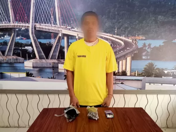 InvestigasiMabes.Com|MALUKU- Aparat Direktorat Reserse Narkoba Polda Maluku, mengamankan seorang penumpang KM Dobonsolo berinisial KAN alias Jaron.Pemuda 27 tahun itu ditangkap di Pelabuhan Yos Sudarso, Kota Ambon. Dari tangannya, ditemukan narkotika jenis ganja seberat 63,12 gram.
