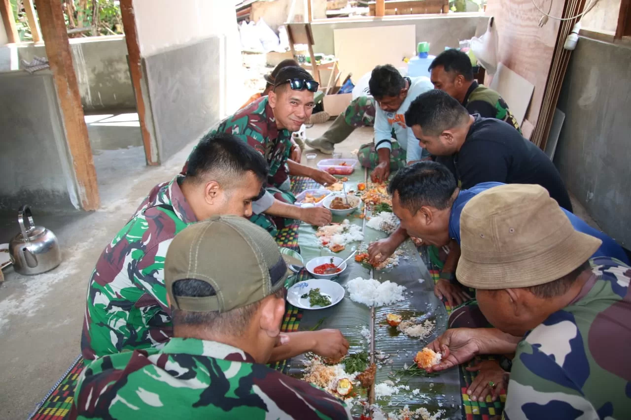 Kegiatan TMMD ke -117 Kodim 0304/Agam, sudah berjalan lebih kurang dua minggu, dalam kesempatan waktu yang masih tersisa digunakan pak Samris yang merasa senang sudah dapat program RTLH sasaran -1 dan megundang anggota satgas makan siang bersama dan Syukuran bertujuan agar rumah yang diberikan nanti ditempati jadi nyaman dan membuat tentram serta bisa digunakan lebih enak dalam beristirahat.