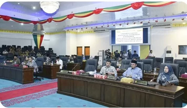 Setelah menyampaikan laporan Badan anggaran terhadap Ranperda Pertanggungjawaban Pelaksanaan (RPP) APBD Tahun Anggaran 2022, Pj Bupati Kampar secara simbolis menyerahkan Dokumen RPP kepada wakil Ketua DPRD Kabupaten Kampar untuk dilanjutkan pada tahap pembahasan selanjutnya di DPRD Kampar melalui komisi dan fraksi-fraksi.(AM).