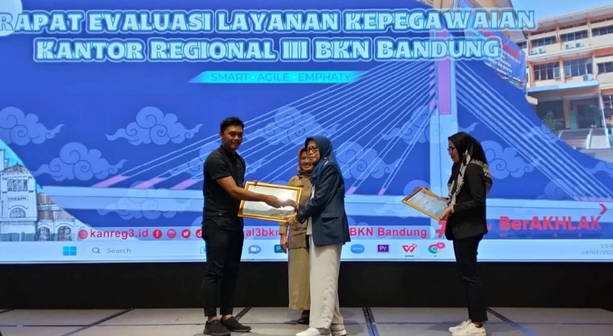 Dalam Gelaran BKN Award 2023 Kabupaten Sukabumi mendapatkan Penghargaan katagori pengembangan kopetensi dengan meraih peringkat ke tiga penghargaan tersebut diberikan Kanreg III BKN Bandung yang di terima oleh Lan maulana yusup, s.ip,m.si Kabid mutasi, kepangkatan dan promosi ASN Badan Kepegawaian Pengembangan Sumber Daya Manusia Kabupaten Sukabumi.