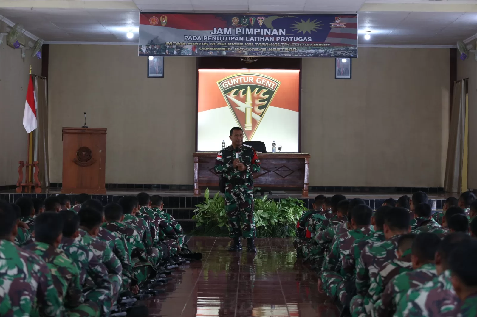 InvestigasiMabes.com | Pendiv2 - Irdivif 2 Kostrad Brigjen TNI Eventius Teddy Danarto melaksanakan Jam Pimpinan sekaligus menutup jalannya Latpratugas Yonarmed 11/GG/2/2 Kostrad dalam rangka Pengamanan Perbatasan Operasi RI-Malaysia di Wilayah Kalimantan Timur dan Kalimantan Utara TA 2023 - 2024 yang bertempat di Aula G3 (Gedung Guntur Geni) Yonarmed 11/GG/2/2 Kostrad, Jl. dr. Koesen Hirohusodo Timur, RT/RW. 08/05, Kel. Gelangan, Kec. Magelang Tengah, Kota Magelang. Jumat (04/08/2023).