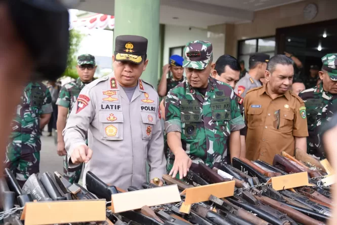 Investigasimabes.Com|Polda Maluku- Kepala Kepolisian Daerah Maluku Irjen Pol Lotharia Latif, menghadiri kegiatan pemusnahan senjata api rakitan yang digelar oleh Kodam XVI/Pattimura, Senin (7/8/2023).Pemusnahan senpi rakitan hasil temuan dan penyerahan masyarakat ini dilaksanakan di Markas Kodam XVI/Pattimura.