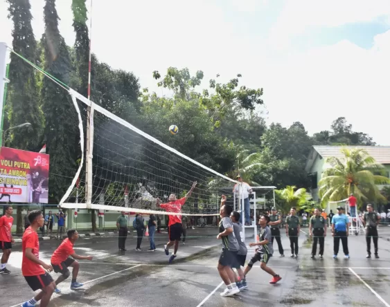InvestigasiMabes.Com|Komando Resor Militer (Korem) 151/Binaiya di hari ke-2 melanjutkan pertandingan Turnamen Bola Voli putra Piala Danrem 151/Binaiya antar sekolah SMA/SMK se Kota Ambon dalam rangka memeriahkan HUT Republik Indonesia ke-78 TA. 2023.Rabu (09/08/2023)Pertandingan bola voli putra di hari kedua ini sangat ramai dari set ke set berikutnya. Terbukti dengan gemuruh sorak riang dari penonton yang menyaksikan pertandingan, kian menambah kemeriahan dan juga gejolak semangat para tim yang sedang berlaga.