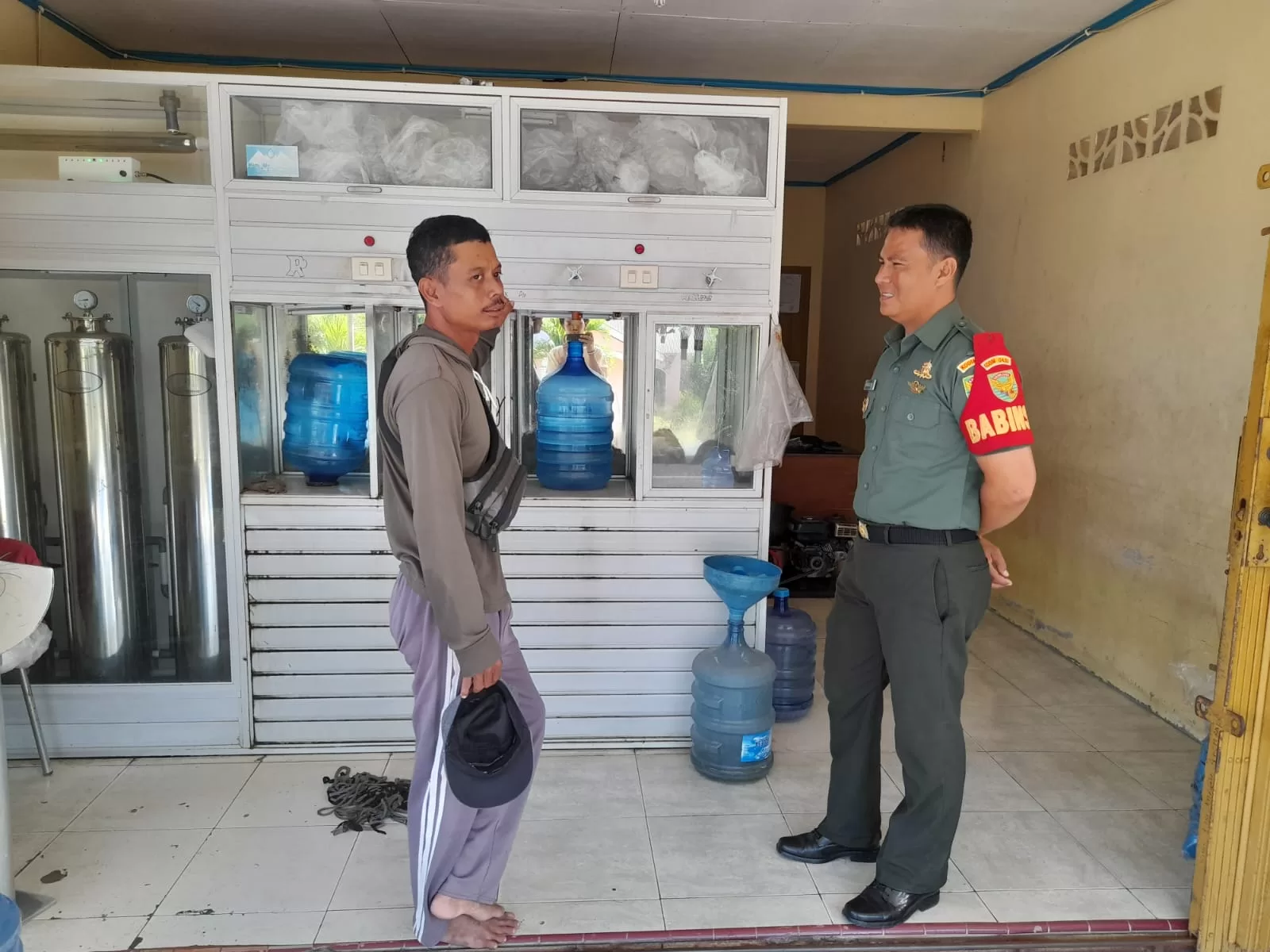 InfestigasiMabes.com | Bangka barat - Babinsa koramil 431-02/Mentok Serda Pahrizal melaksanakan komsos dengan warga desa Air putih Kec. Mentok, dengan melaksanakan silaturrahmi dengan Bapak Anton yang mempunyai Usaha Mikro Kecil dan Menengah (UMKM), yaitu Depot Air Minum isi ulang yang ada di Desa Air putih. Rabu, (09/08/2023)