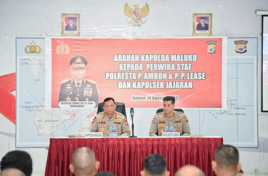 InvestigasiMabes.Com| Polda Maluku- Kepala Kepolisian Daerah Maluku Irjen Pol Lotharia Latif, memberikan pengarahan kepada Kapolresta dan seluruh personel di jajaran Polresta Pulau Ambon dan Pulau-pulau Lease.Penyampaian arahan Kapolda Maluku yang didampingi sejumlah pejabat utama Polda Maluku ini, dilaksanakan di Markas Polresta Ambon, Kota Ambon, Senin (14/8/2023).