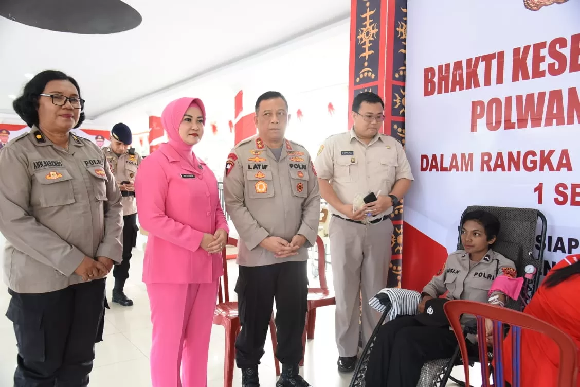 Aksi donor darah tersebut di fasilitasi oleh Palang Merah Indonesia (PMI) Cabang Ambon."Kegiatan donor darah ini dalam rangka hari ulang tahun Polwan yang ke 75," kata Kapolda Maluku Lotharia Latif.Kapolda berharap kepada seluruh Polwan Polda Maluku agar aksi sosial kemanusiaan ini tidak sekedar kegiatan seremonial semata. Sebaliknya, kegiatan menunjukan semakin matangnya usia Polwan ke-75 Tahun."Kami juga menyampaikan terima kasih kepada rekan-rekan kita dari Kowad Kodam XVI/Pattimura, Kowal Lantamal IX Ambon, dan Wara Lanud Pattimura yang mana telah berpartisipasi dalam pelaksanaan aksi donor darah hari ini," katanya.