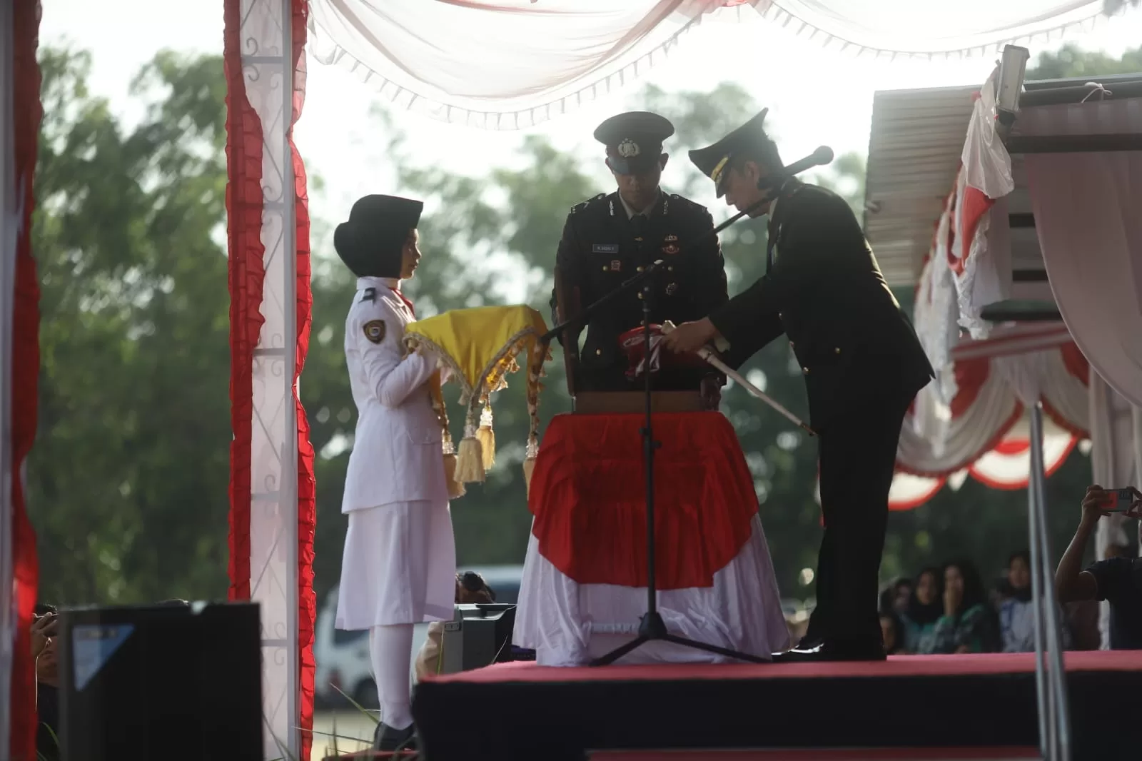 InvestigasiMabes.com | Bangka Barat -- Dandim 0431/Babar Letkol Inf Kemas Muhammad Nauval, M.Han menghadiri dan sekaligus menjadi IRUP Upacara Penurunan Bendera Merah Putih HUT RI ke - 78 di Lapangan Atletik Kompleks Perkantoran Terpadu Pemerintah Kabupaten Bangka Barat, Kecamatan Mentok, Kamis ( 17/8/2023 ).