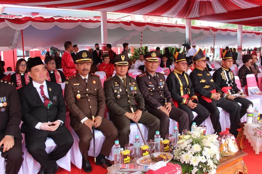 InvestigasiMabes.com | Manado - Komandan Kodim 1310/Bitung Letkol Arm Yoki Efriandi, M.Han., bersama Ibu dan unsur Forkopimda kota Bitung menghadiri Upacara Bendera dalam rangka Memperingati HUT Kemerdekaan RI ke - 78 Tahun 2023Bertempat di Lapangan upacara Kantor Walikota Bitung, Kel. Bitung Barat Satu Kec. Maesa, Kota Bitung, Kamis (17/08/2023).