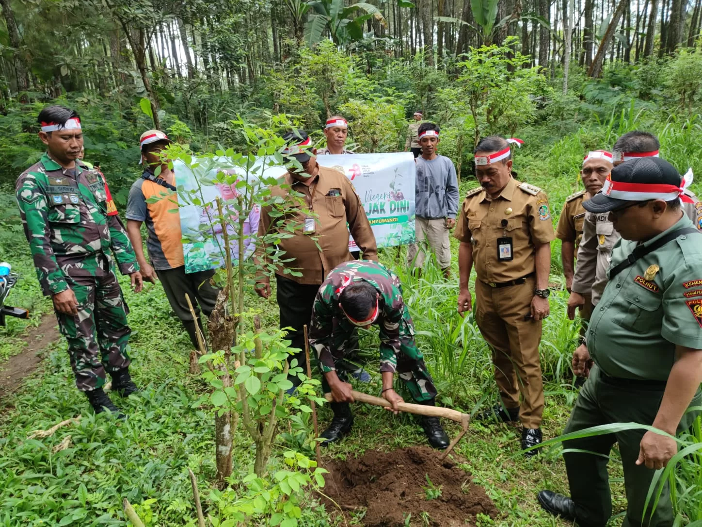Meriahkan HUT RI 78 Anggota Koramil 0825/21 Kalipuro Laksanakan Bahkti Sosial Penanaman Pohon