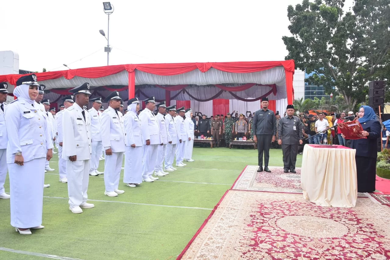 InvestigasiMabes.com l Mandau -- Bupati Bengkalis Kasmarni melantik dan mengambil sumpah pelantikan Penjabat (Pj) Kepala Desa (Kades) se-Kabupaten Bengkalis, Jum'at, 1 September 2023 di halaman Kantor Camat Mandau.Pelantikan Penjabat Kepala Desa karenahabisnya masa jabatan Kades pada 28 Agustus kemarin.