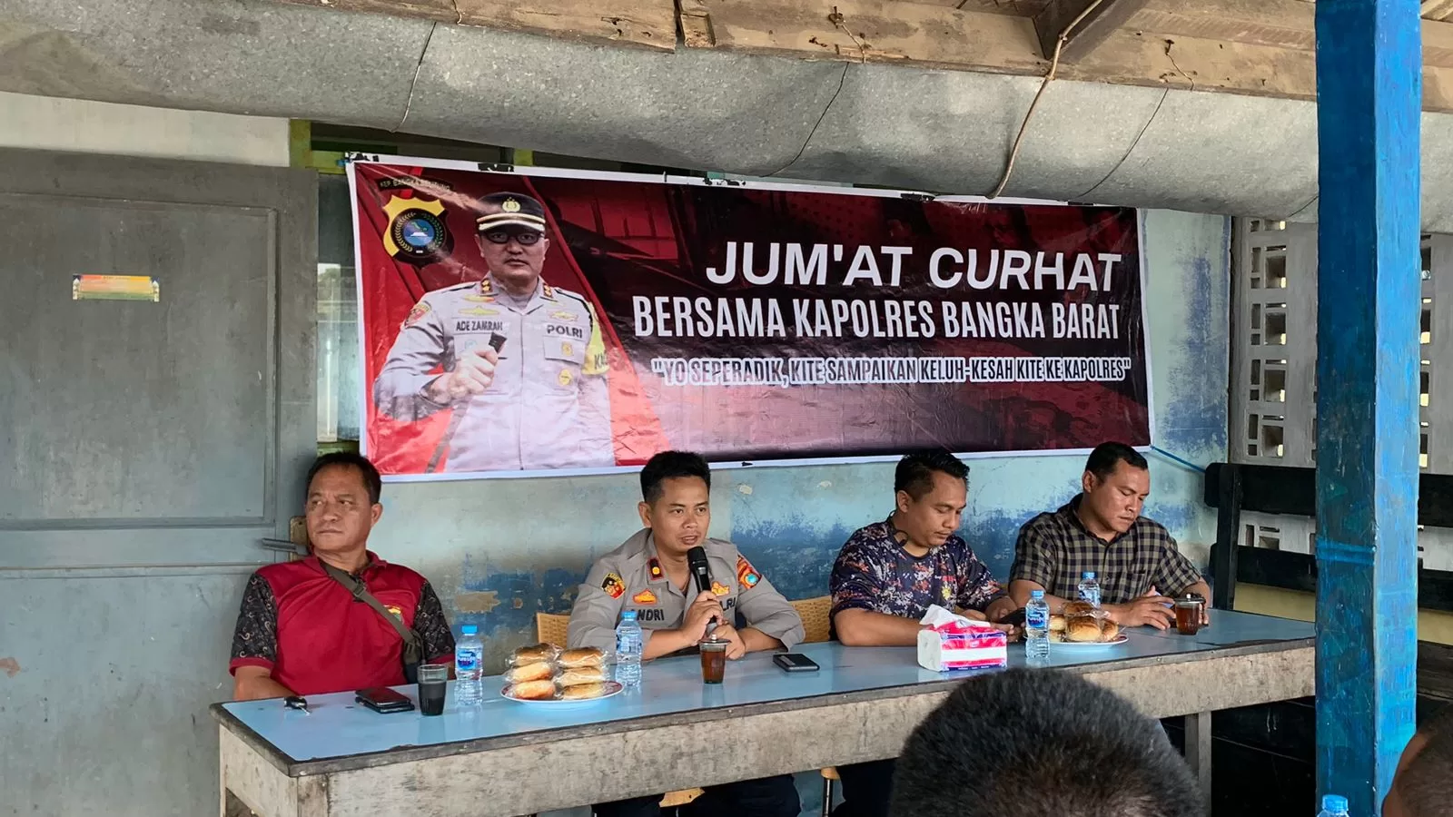 Wakapolres Bangka Barat Kompol Andri Eko Setiawan Memfokuskan Jum’at curhat pada masalah menjaga situasi Kamtibmas di wilayah kabupaten Bangka BaratSalah satu masyarakat Awi mengatakan Pak tolong TI apung yang ilegal mengganggu nelayan tolong ditertibkan pak