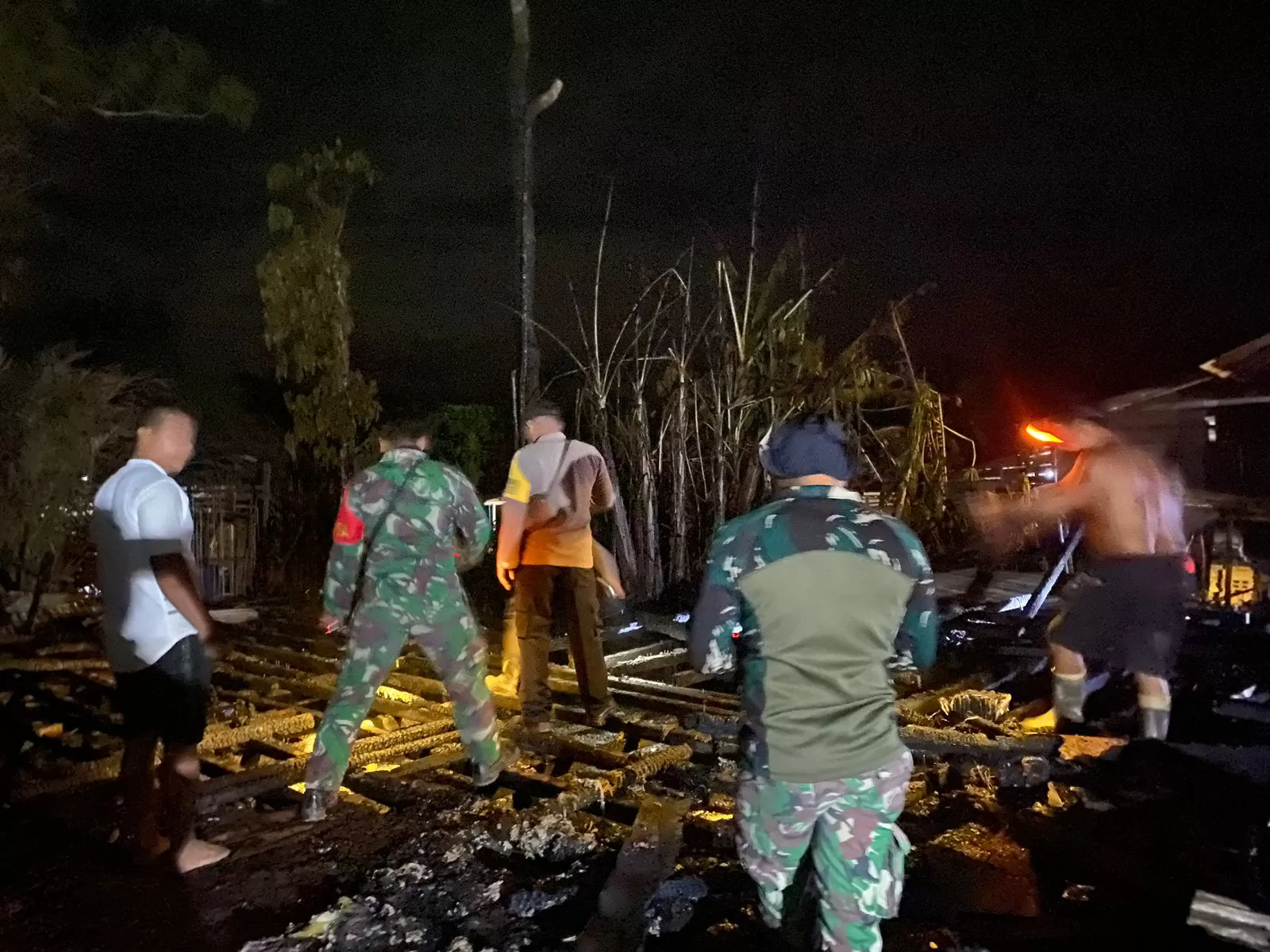 “Bersama petugas Damkar, kepolisian dan dibantu masyarakat kita bergotong royong memadamkan kobaran api yang telah membakar rumah warga ini. Alhamdulillah setelah berselang beberapa waktu api dapat di padamkan,”ujar Danramil.Diketahui, kebakaran yang menimpa rumah milik Mualang(70) dan Mariana (70)itu terjadi pada pukul 23.00 Malam,untuk penyebab kebakaran belum dapat dipastikan namun diduga bersumber dari dapur.