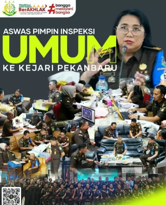 InvestigasiMabes.com | Pekanbaru - Kasi Penkum Kejati Riau Bambang Heripurwanto SH., MH melalui siaran persnya pada hari Selasa tanggal 23 Januari 2024 sekira pukul 09.00 Wib, Bertempat di Kantor Kejaksaan Negeri Pekanbaru, mengatakan bahwa Asisten Pengawasan Kejaksaan Tinggi Riau Ayu Agung, S.H, S.Sos, M.H, M.Si (Han) melakukan Inspeksi Umum dan Khusus di Kejaksaan Negeri Pekanbaru disambut oleh Kepala Kejaksaan Negeri Pekanbaru Asep Sontani Suanarya, S.H., CN beserta para Kasi dan Kasubagbin, serta seluruh pegawai Kejaksaan Negeri Pekanbaru.
