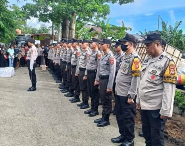 InvestigasiMabes.com l Gowa -- Polres Gowa menggelar Upacara pelepasan jenazah Almarhum Aiptu Kukuh Santoso (Bintara Polsek Pallangga Polres Gowa) dihalaman rumah duka di Buttadidi di samping Coto Jeneberang Kelurahan Mawang Kecamatan Somba Opu Kabupaten Gowa Provinsi Sulawesi Selatan, Jum'at 02/02/2024.Upacara pelepasan jenazah dipimpin langsung oleh Wakapolres Gowa Kompol Soma Mihardja, S.Sos.,M.M,