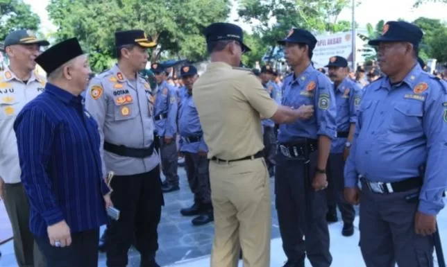 Saya berpesan kepada Seluruh anggota Satlinmas untuk memberikan pelayanan yang tepat, cepat atas Segala ancaman, gangguan, halangan dan Tantangan terkait dengan Ketertiban umum dan Ketentraman yang terjadi ditengah masyarakat. Dan mematuhi aturan yang berlaku, bersinergi Dengan stakeholder yang Ada dan menjalankan Tugasnya dengan baik dan humanis” Pesan Pj. Bupati.