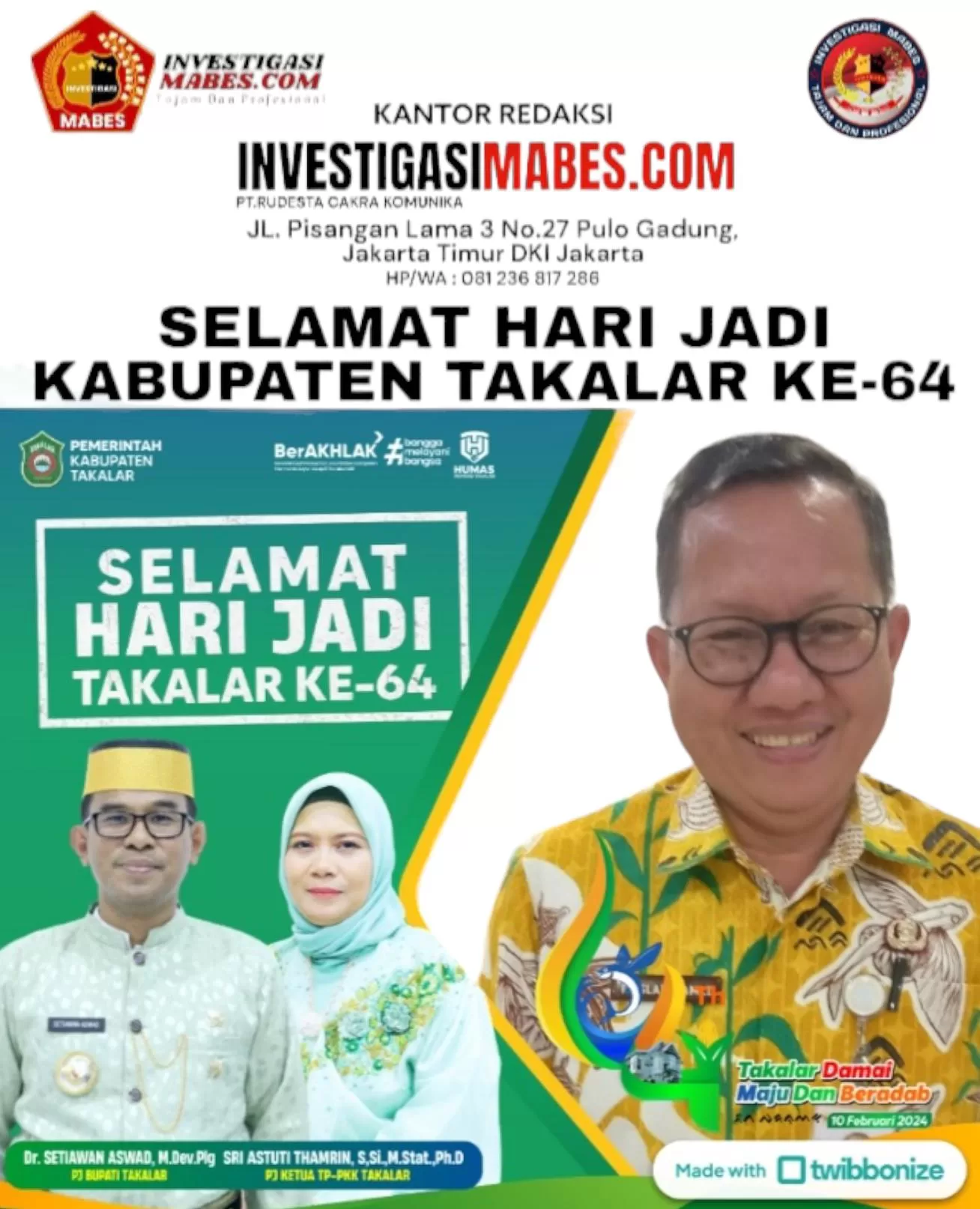 Direktur Rumah Sakit Umum Daerah H.Padjonga Daeng Ngalle dr. H. Ruslan Ramli,M. Adm.Kes. mengatakan Selamat Hari Jadi Kab. Takalar yang ke – 64 Tahun dan beliau juga Ungkapkan bahwa kedisiplinan dan kerajinan merupakan kunci utama kesuksesan Seorang pegawai di Rumah Sakit Umum Pajonga Daeng Ngalle.(Mansyur Dn) Editor : Investigasi MabesDirut RSUD H. Pajonga Daeng Ngalle. Mengucapkan Selamat HUT Kabupaten Takalar Ke - 64