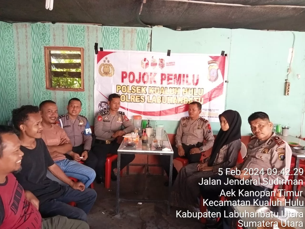 Dalam pelaksanaan Pojok Pemilu, Polres Labuhanbatu dan Polsek Jajaran mengajak masyarakat untuk memberikan hak suaranya dalam pencoblosan Pemilu 2024. Masyarakat diingatkan untuk tidak memaksakan pilihan kepada orang lain dan memastikan namanya terdaftar dalam Daftar Pemilih Tetap (DPT) Pemilu 2024 Kabupaten Labuhanbatu dan labuhanbatu UtaraPersonel Polsek Kualuh Hulu juga berpesan untuk selalu peka terhadap lingkungan tempat tinggal masing masing terutama dalam hal keamanan. Masyarakat diminta untuk melaporkan kepada pihak Kepolisian." Ujar kasi humas.