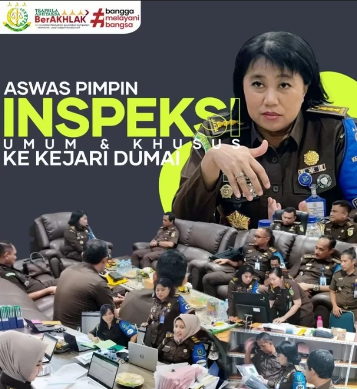 InvestigasiMabes.com | Pekanbaru - Kasi Penkum Kejati Riau Bambang Heripurwanto SH., MH melalui siaran persnya pada hari Selasa tanggal 06 Februari 2024, Bertempat di Kantor Kejaksaan Negeri Dumai, mengatakan bahwa Asisten Pengawasan Kejaksaan Tinggi Riau Ayu Agung, S.H, S.Sos, M.H, M.Si (Han) melakukan Inspeksi Umum dan Khusus di Kejaksaan Negeri Dumai disambut oleh Kepala Kejaksaan Negeri Dumai Dr. Agustinus Herimulyanto, S.H., M.H, Li beserta para Kasi dan Kasubagbin, serta seluruh pegawai Kejaksaan Negeri Dumai.