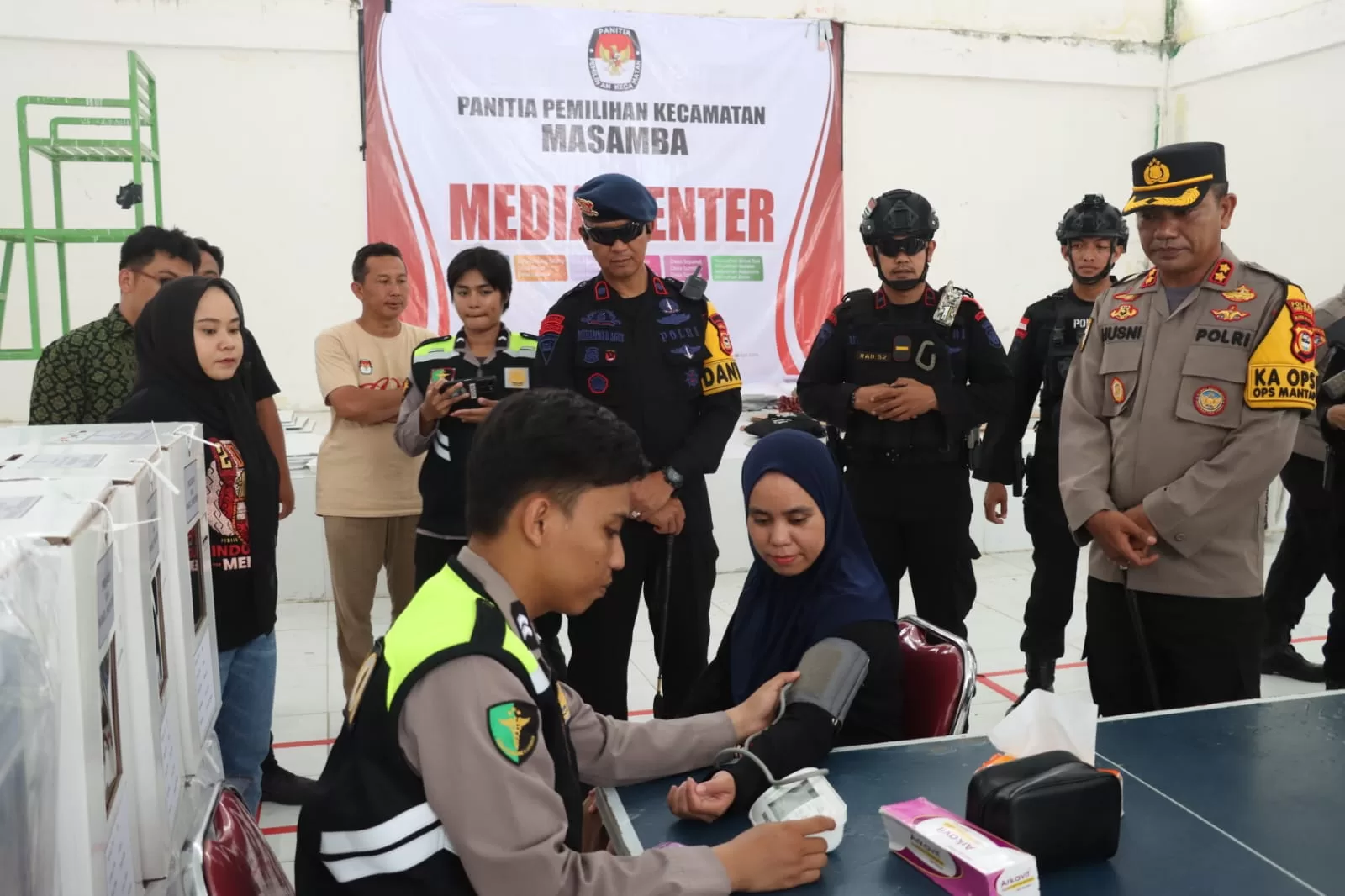 investigasiMabes.com l Makassar -- Dalam rangka mendukung kelancaran dan kesuksesan penyelenggaraan Pemilu 2024 Polres Jajaran Polda Sulawesi Selatan melaksanakan bakti kesehatan untuk para petugas Pemilihan Umum (Pemilu) 2024 di Wilayahnya masing-masing, Kamis 15/02/2024..Pelaksanaan Bakti Kesehatan dipantau langsung para Kapolres didampingi Para Bupati, Unsur TNI dan Stakeholder yang memantau langsung pelaksanaan Bakri Kesehatan tersebut.
