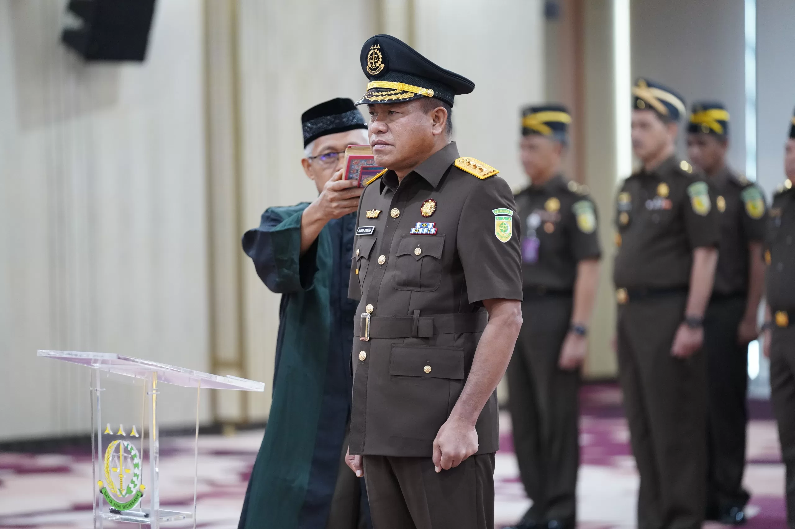 Dalam amanatnya, Jaksa Agung menyampaikan bahwa prosesi ini akan menjadi tiang pancang sejarah untuk menempatkan lembaga Kejaksaan sebagai titik sentral dalam upaya mewujudkan penegakan hukum yang berorientasi pada pemulihan keuangan serta perekonomian negara.