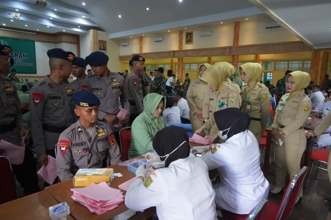 Usai memberikan sambutan, Danrem 042/Gapu Brigjen TNI Rachmad, S.I.P dan Ketua Persit Kartika Chandra Kirana Koorcab Korem 042 PD II/Sriwijaya Ny. Leni Rachmad melakukan pemeriksaan kesehatan bersama pejabat Korem lainnya.