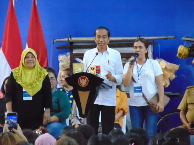 Dalam penyampaian terlihat Presiden Jokowi Sedikit Bernostalgia menceritakan pengalamanya dihadapan para nasabah PNM (Mekar) saat awal dirinya merintis usaha.
