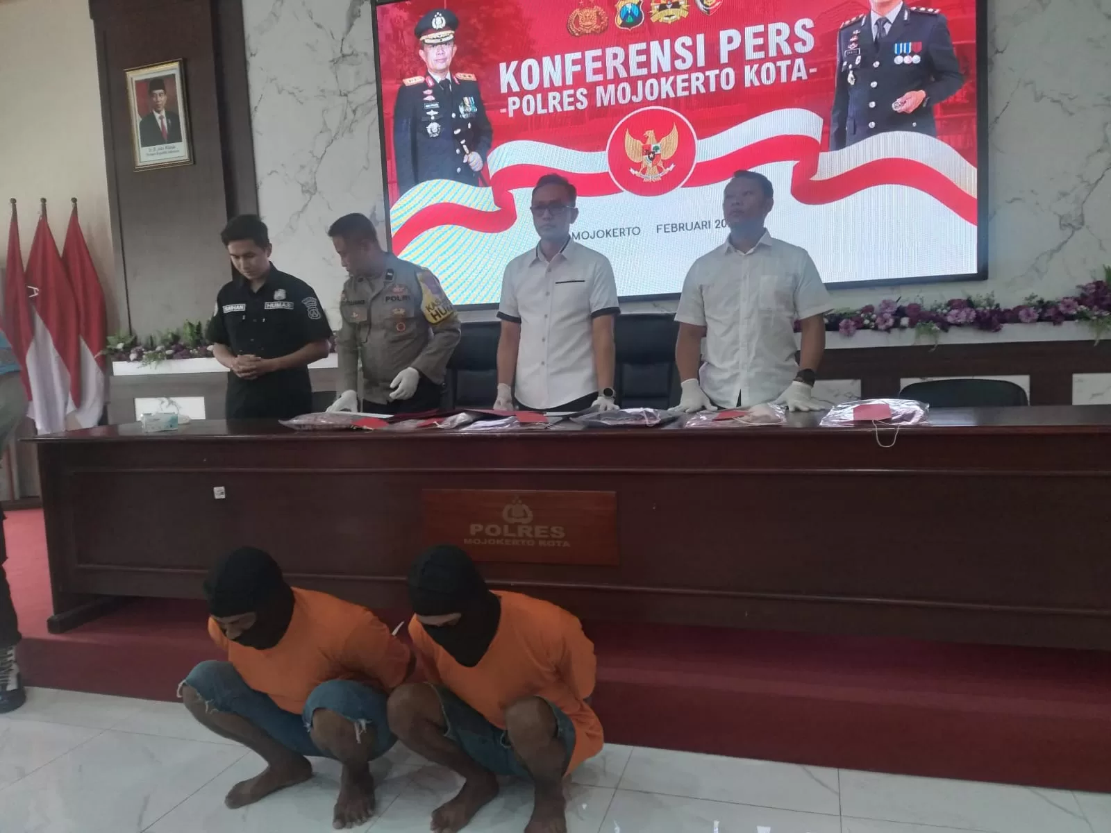 InvestigasiMabes.com | Mojokerto - Polres Mojokerto Kota menggelar Press Release kasus tindak pidana pencabulan yang terjadi di Kecamatan Jetis, Kota Mojokerto. Senin, (26/02/24).
