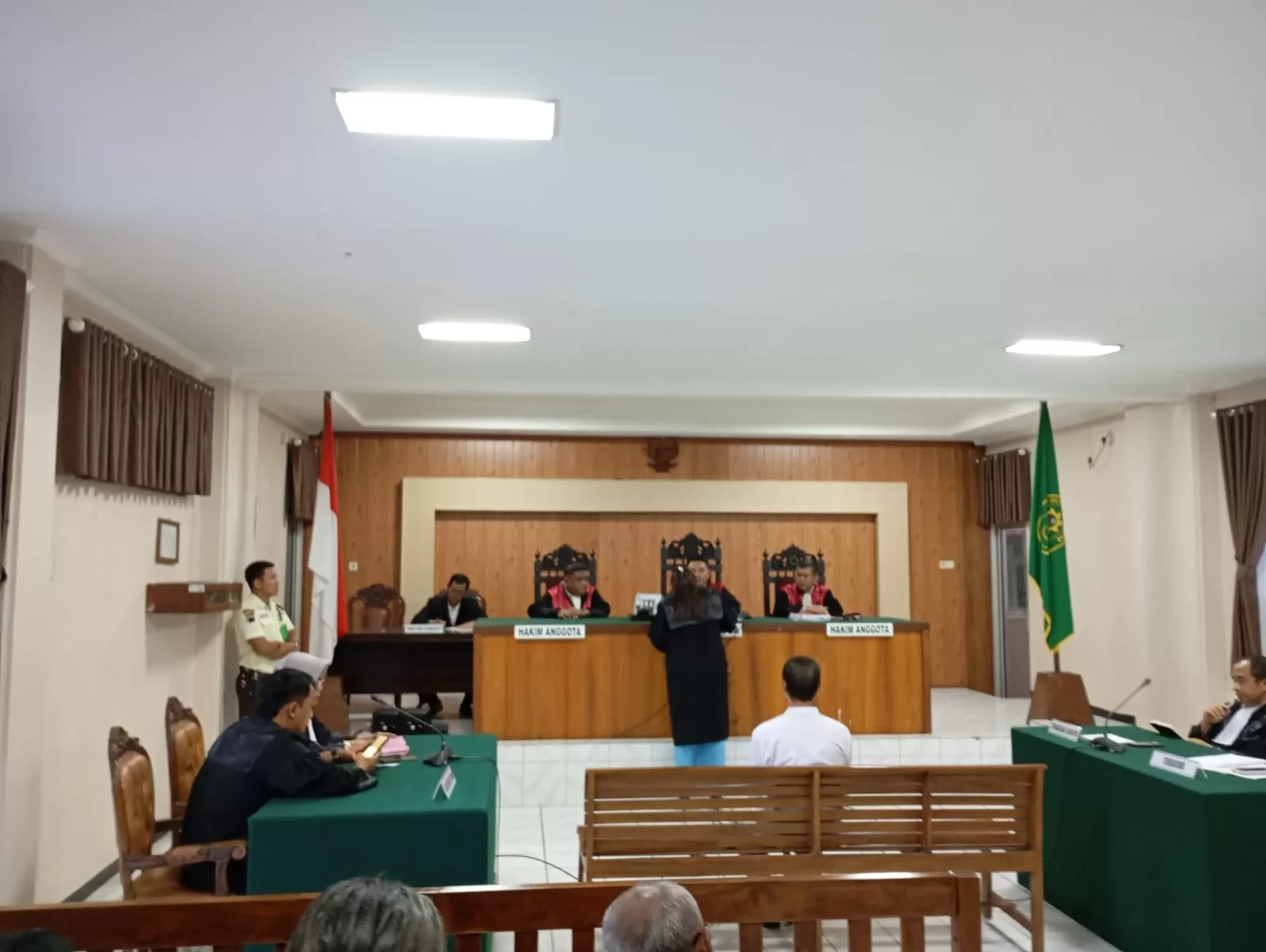 Sidang dipimpin Ketuai Majelis Hakim Parlin Mangatas Bona Tua, didampingi hakim anggota Muhamad Yusuf Sembiring dan Joko ciptanta. Jaksa Penuntut Umum ( JPU ) dipimpin Idha Fitriyani dan Irvan Surya. Turut hadir tim penasehat hukum terdakwa Daniel FMT dan kubu pendukung terdakwa diruang sidang.