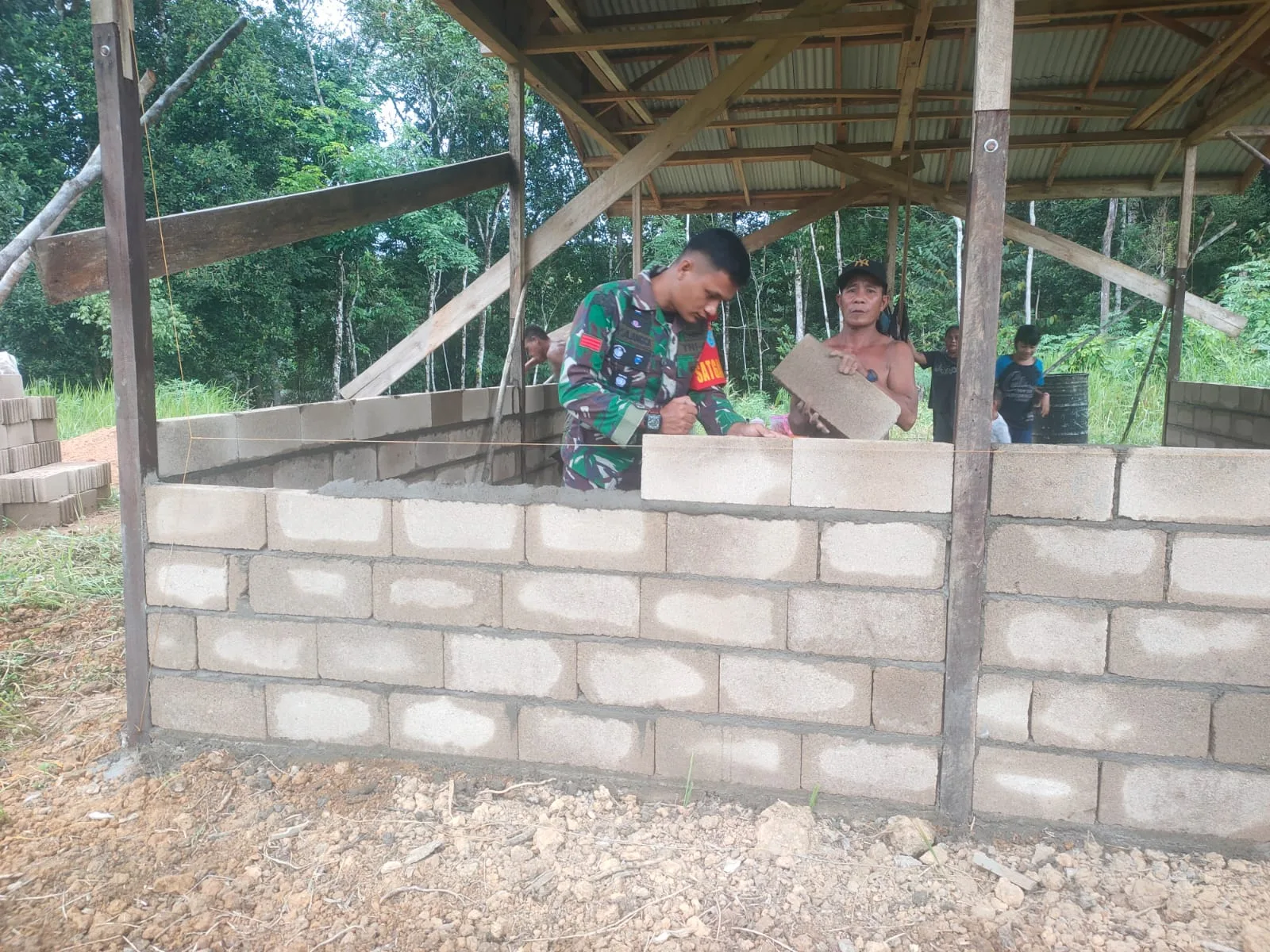 Investigasimabes.com l Bengkayang – Wujud kebersamaan dan meningkatkan kerja sama di wilayah binaan, Babinsa Koramil 07/Jgb Praka Yogi Ari Angga melaksanakan karya bakti membantu warga membangun rumah di Dsn. Akit Ds. Sungkung I Kec. Siding Kab. Bengkayang.Kamis (16/1/25).