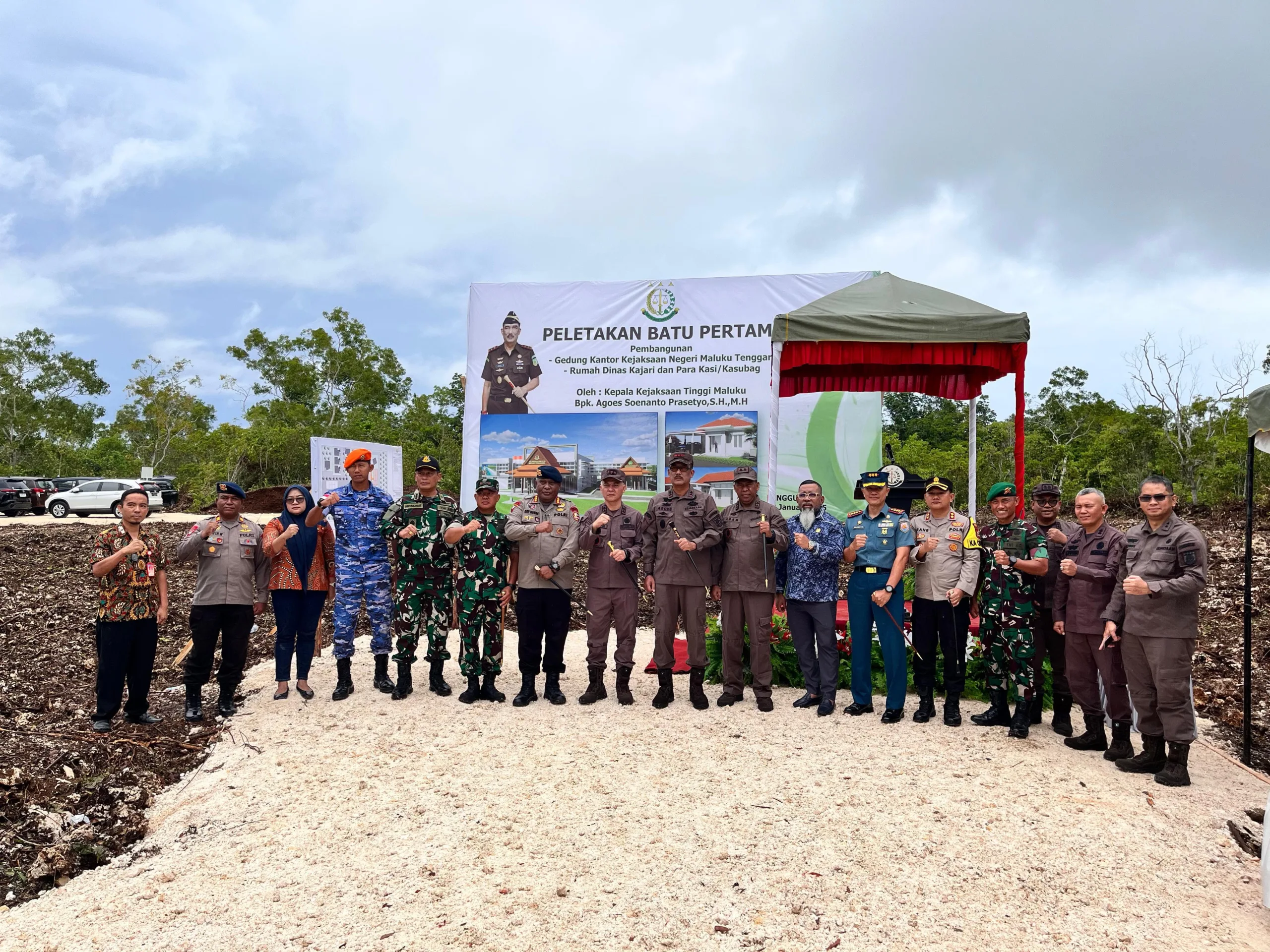 InvestigasiMabes.com | Ambon - Kasi Penkum Kejaksaan Tinggi Maluku Ardy, S.H.,M.H dalam siaran persnya mengatakan bahwa Kejaksaan Negeri Maluku Tenggara yang baru dibentuk berdasarkan PERPRES No. 22 tahun 2024, kini dipastikan memiliki Kantor tersendiri dengan dilakukannnya peletakan batu pertama oleh Kepala Kejaksaan Tinggi Maluku Agoes Soenanto Prasetyo, S.H.,M.H didampingi Ketua IAD Wilayah Maluku Ny. Debie Agoes, yang berlokasi di Jl. Abraham Koedoeboen – Langgur Kabupaten Maluku Tenggara, pada hari ini Kamis (23/01/2025).