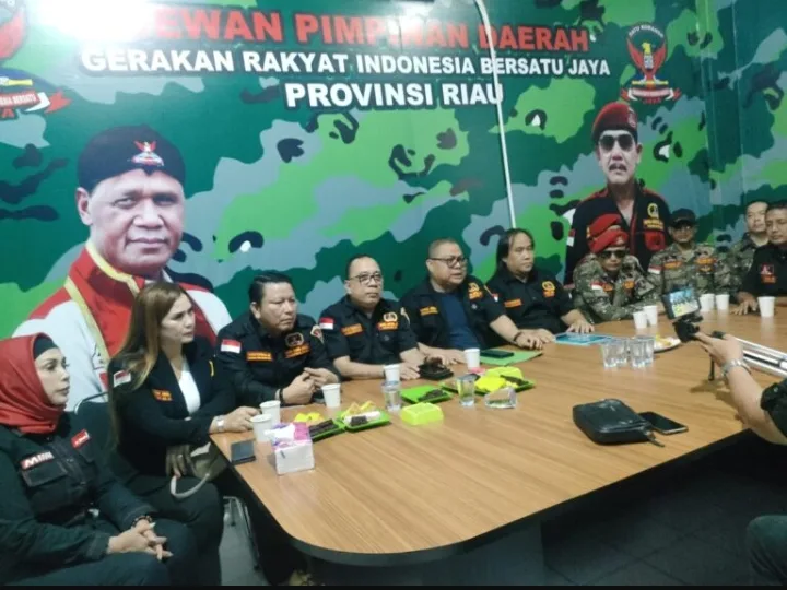 InvestigasiMabes.com l Pekanbaru -- Dewan Pimpinan Daerah (DPD) GRIB Jaya Provinsi Riau menggelar konferensi pers menanggapi insiden yang hampir berujung bentrokan antara anggotanya dan Pemuda Pancasila (PP) di Jalan Pasir Putih, Pandau Jaya, Kabupaten Kampar, pada Jumat malam (31/1/2025).Konferensi pers ini dihadiri oleh jajaran DPD GRIB Jaya Riau, termasuk Ketua Penasehat, Ketua Srikandi, dan Humas. Dalam pernyataannya, Sekretaris DPD GRIB Jaya Riau, Cutra Andika, S.H., M.H., membenarkan bahwa sempat terjadi ketegangan antara kedua ormas akibat kesalahpahaman terkait sengketa tanah di lokasi tersebut.