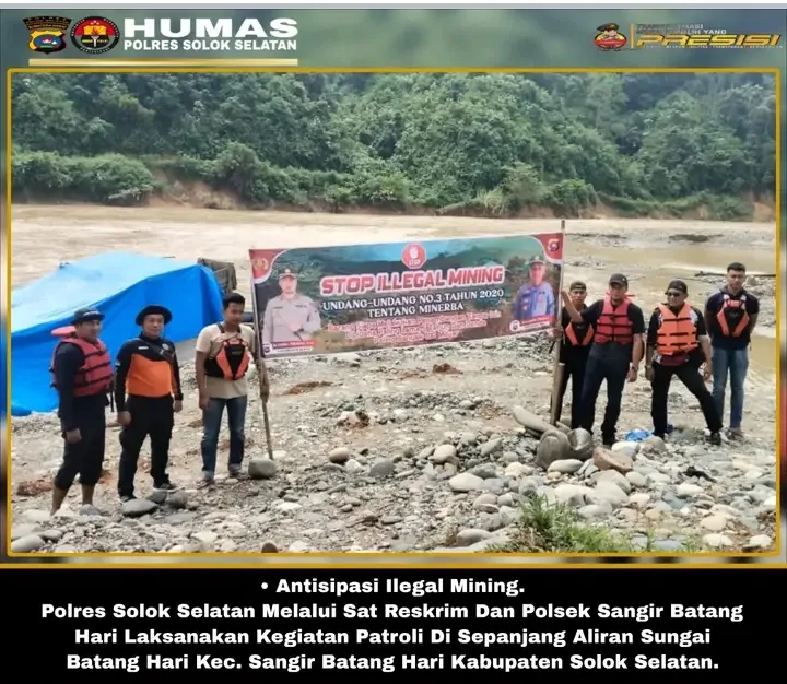 InvestigasiMabes.com | Solok Selatan - Dalam upaya mencegah aktivitas pertambangan ilegal (illegal mining), Polres Solok Selatan melalui Sat Reskrim Polres Solsel dan Polsek SBH melaksanakan patroli di sepanjang aliran Sungai Batang Hari, Kecamatan SBH.