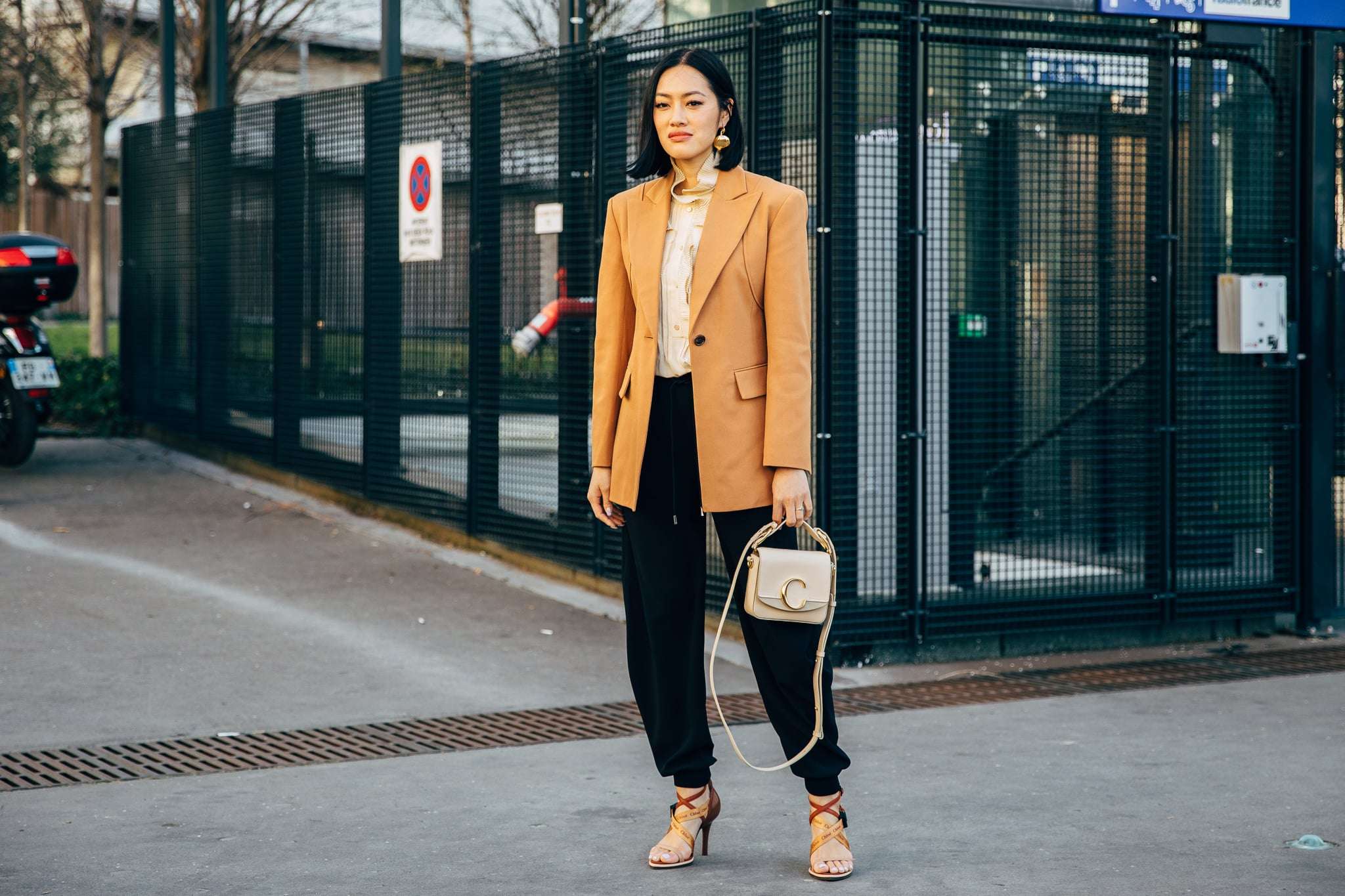 5. Penampilan yang lebih teratur, sesuai dipakai saat pergi ke kantor atau menghadiri acara resmi. Campurkan dengan celana jogger dengan blazer dan high heels berwarna netral.