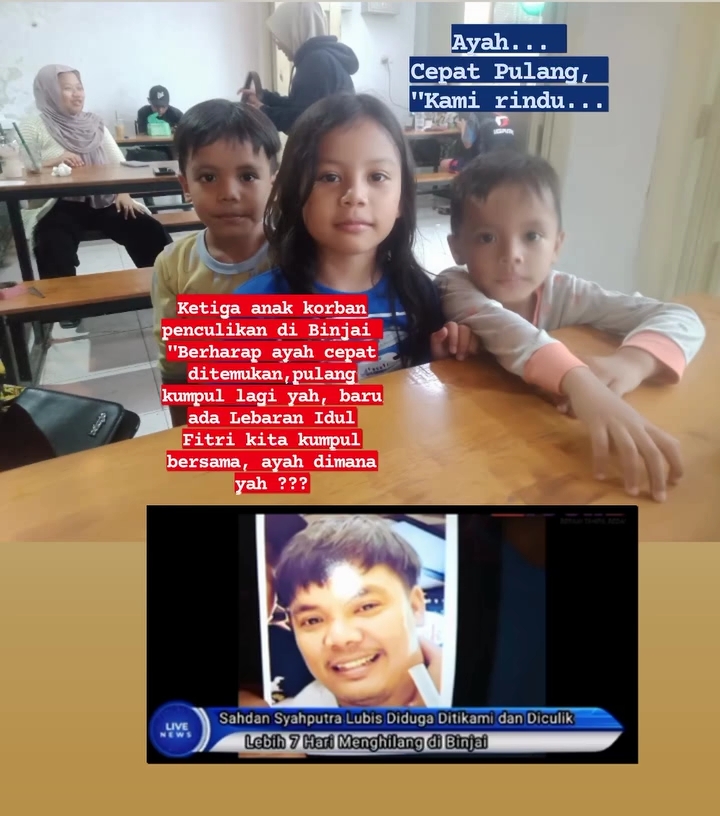 InvestigasiMabes.com | Binjai - Korban, atas nama Sahdan Syahputra Lubis diduga dianiaya dan diculik oleh sekelompok orang, hingga sampai sekarang sudah seminggu lebih belum ditemukan, dan terakhir tanggal 08 April 2025 suaminya sudah tidak bisa dihubungi/berkomunikasi lagi melalui telepon seluler, menurut keterangan istri korban Pipit Widari kepada wartawan, “Mobil yang sering dikemudikannya ditemukan di Jalan Sungai Musi, Kec. Sei Bingai, Kabupaten Langkat, dekat Wisata Jona Garden.